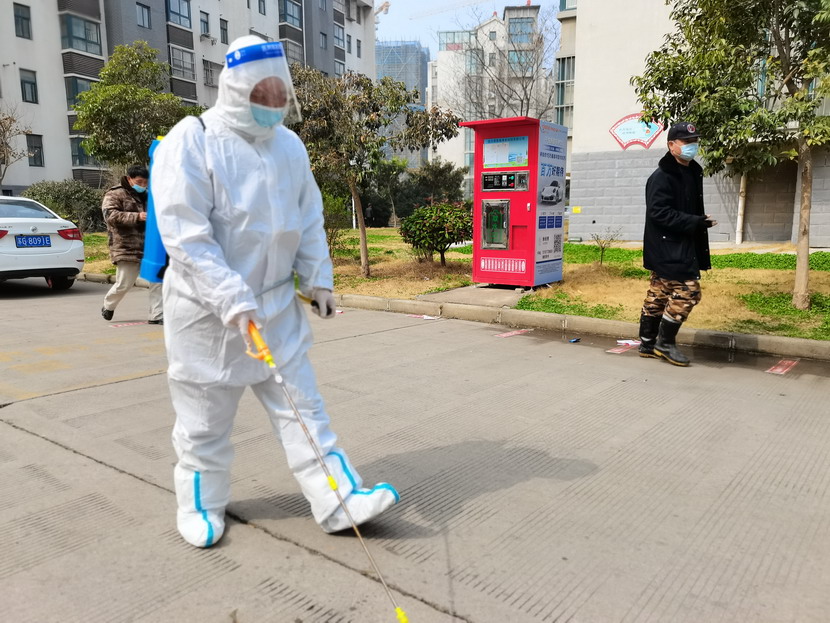 孫銀:“請(qǐng)大家抬一下腳,靠邊站一下,我將您的周?chē)鷩姙⑾疽哼M(jìn)行消毒,謝謝配合!”
