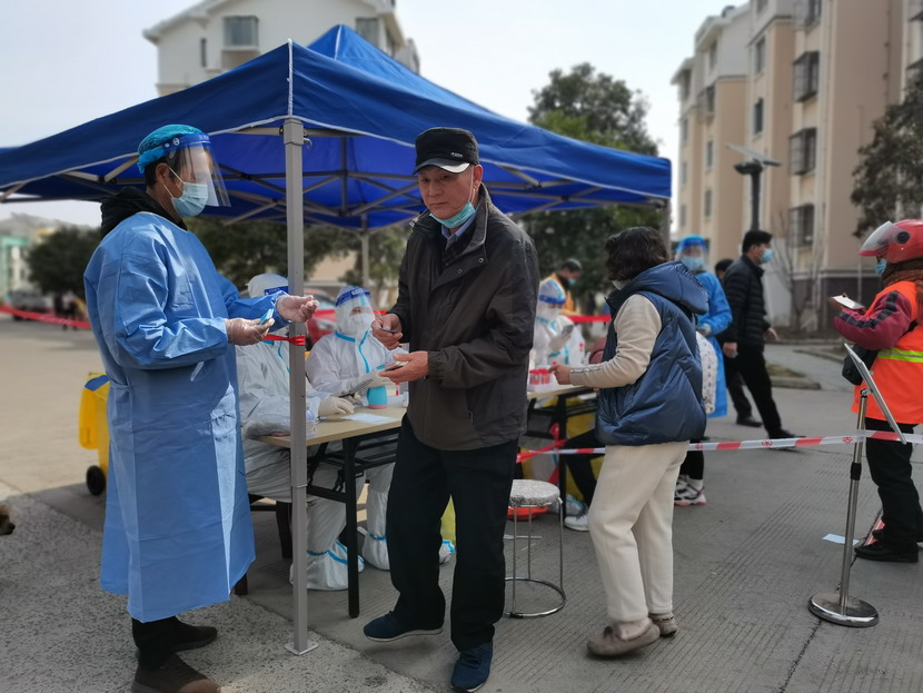 夜里9點(diǎn)40分,昌圩臨時(shí)黨支部抗疫工作群里信息不斷:“同志們,剛接社區(qū)緊急通知,明天要進(jìn)行第五輪核酸檢測(cè),還沒(méi)有睡的同志們請(qǐng)到社區(qū)緊急集合,又增加兩個(gè)檢測(cè)點(diǎn),抓緊去建點(diǎn)擺臺(tái)?!? “霍正鋼收到、蘇玲收到、秦黎明收到、朱文健收到、邱榮濱收到、于洪亮收到……”,“好,晚上溫度比較低,請(qǐng)大家穿暖和一點(diǎn),10點(diǎn)社區(qū)準(zhǔn)時(shí)集合?!辈着R時(shí)黨支部書(shū)記李明發(fā)完最后一條信息,穿好馬甲,戴上口罩,出發(fā)下樓。