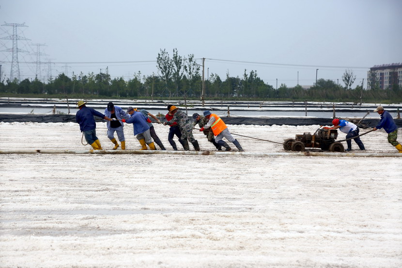 今年以來,針對政府征地、堿廠關停的現(xiàn)實,投資公司積極推進生產(chǎn)方式變革,打破一年兩季固有收鹽模式,實現(xiàn)原鹽隨用隨收。在海州灣先鋒東灘扒鹽一線,王德志仔細觀看了作業(yè)情況,現(xiàn)場收鹽職工正在進行挪機工作。