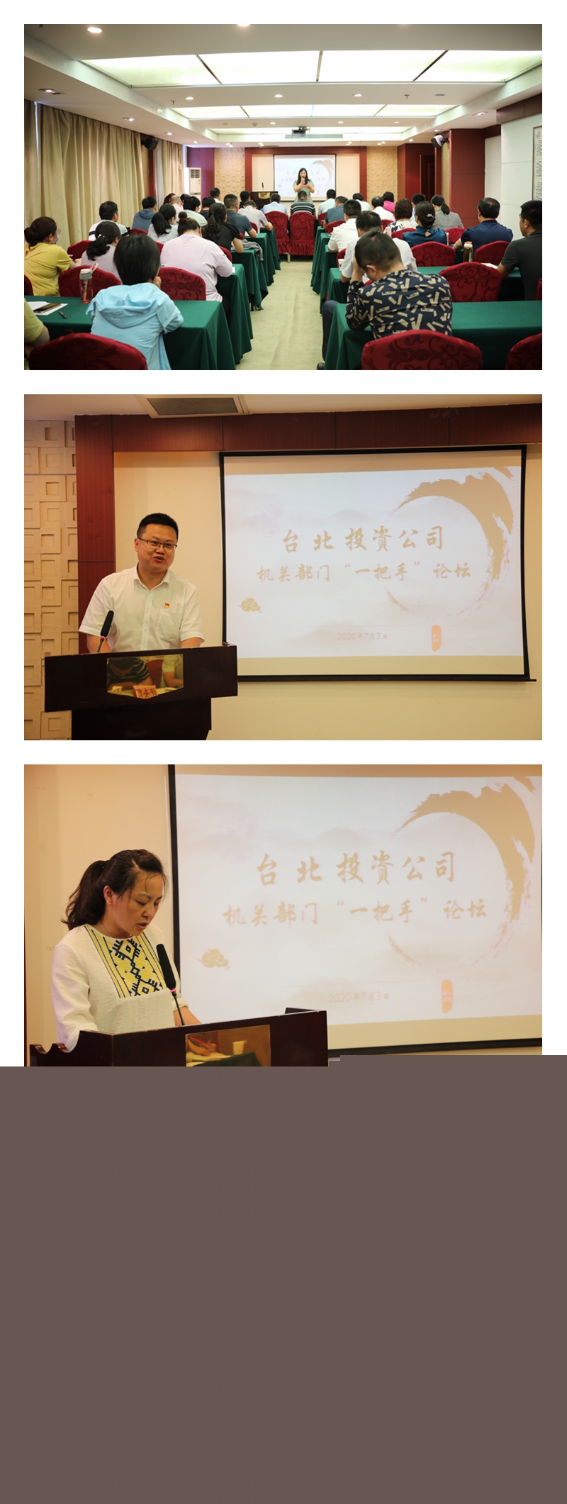 7月3日下午,投資公司在九樓會(huì)議室舉辦臺(tái)北大講壇——部門(mén)“一把手”專場(chǎng),來(lái)自機(jī)關(guān)部門(mén)的八位同志走上講臺(tái),談心得,談想法,談思路,談措施。公司領(lǐng)導(dǎo)、各單位黨政負(fù)責(zé)人、機(jī)關(guān)部門(mén)部分人員參加了講壇。本次講壇由各基層單位主要負(fù)責(zé)人作為評(píng)委。