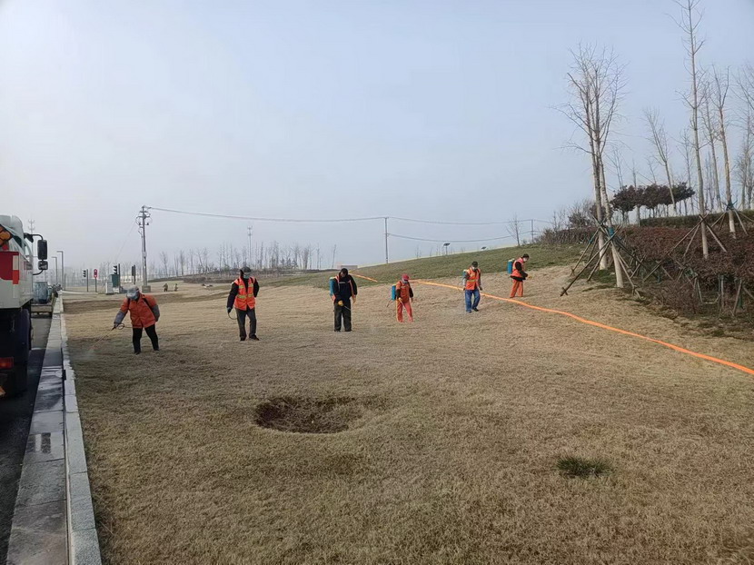 另一方面,公司積極調集人力,在養(yǎng)護區(qū)域內開展地毯式人工滅草行動。凡是不能進行藥物噴灑的地方,利用割草機、鐮刀、鋤頭等工具全部進行人工鏟除,確保不留死角。