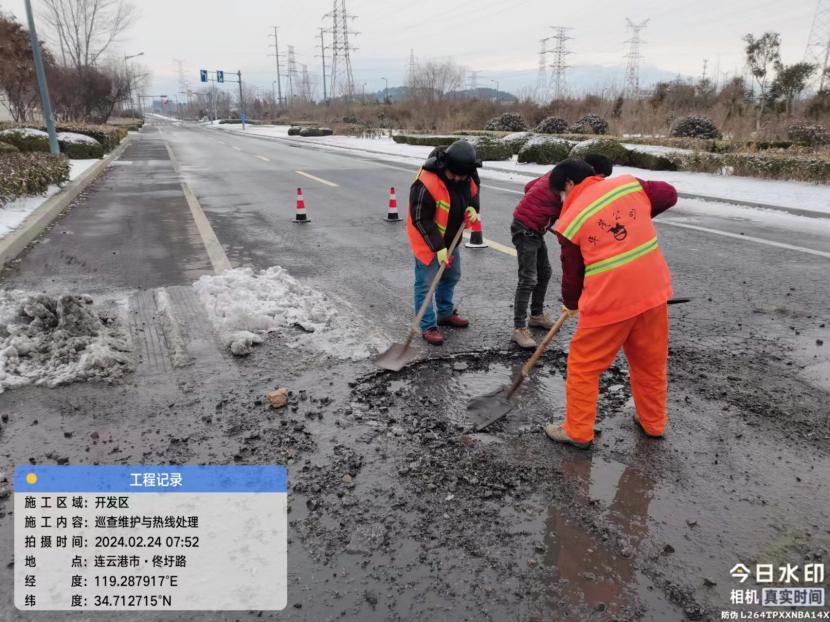 由于連續(xù)的暴雪席卷港城,使轄區(qū)道路路面遭受不同程度的凍害,出現(xiàn)坑塘、裂縫等情況,給群眾出行帶來安全隱患。盛達(dá)市政分公司于22日開始,晨起早、晚加班,開展雪后道路排患工作,快速處理雪后各項道路病害問題,為道路通行安全提供有力保障。