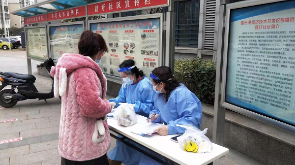 “我白天配合‘大白’做核酸信息采集工作,晚上要把信息及時錄入電腦,連軸轉(zhuǎn),連掛兩天吊針。昌圩社區(qū)志愿服務(wù)截止到今天配合“大白”完成五次核酸檢測工作,第一天核酸檢測1070人,從中午1點到7點多,站了6、7個小時,雖然很累但我很自豪!因為我是共產(chǎn)黨員!”