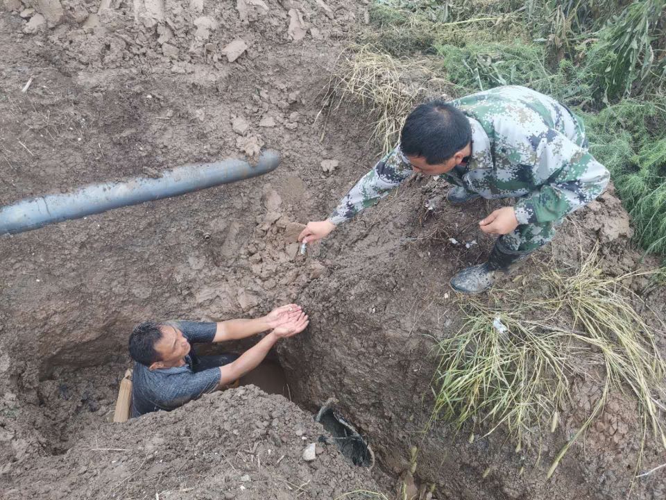 泵站是大浦工區(qū)的命脈,也是生存之源。泵站三人組席強(qiáng)余、喬效富、龔大春憑著敏銳的洞察力,迅速關(guān)掉閥門,帶上工具,立刻出發(fā)排查檢修輸鹵管道。由于昨夜突降暴雨,地面潮濕,給排查工作帶來了相當(dāng)大的困難,三人組按照多年的工作經(jīng)驗(yàn),當(dāng)機(jī)立斷,分工分路段進(jìn)行排查,與時(shí)間賽跑,早點(diǎn)找到損壞的管道就能減少鹵水的損失。經(jīng)過三人精心細(xì)致的排查,徒步六公里,終于在臺北汽車城一處雜草叢生的區(qū)域發(fā)現(xiàn)了損壞的管道,此處管道是掩埋在泥土里面,修復(fù)起來難度更大,三人立即拿起鐵锨開挖,席強(qiáng)余顧不上管道溝里齊膝渾濁的雨水,穿著膠鞋就淌進(jìn)溝里,坐騎在管道上,雙手伸進(jìn)水里,嫻熟的進(jìn)行修復(fù)。經(jīng)過近兩個小時(shí)的維修,管道恢復(fù)正常供鹵,大程度減少了鹵水損失,為原鹽順利生產(chǎn)提供了堅(jiān)強(qiáng)有力的保障。