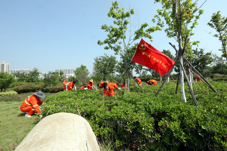 活動(dòng)分為四組進(jìn)行,四組黨員突擊隊(duì)跟隨引導(dǎo)員的腳步到達(dá)各自片區(qū),進(jìn)行綠化帶雜草清除作業(yè)。在各組支部書記的帶領(lǐng)下,勞動(dòng)中人人做表率,個(gè)個(gè)干勁足,有條不紊互相配合,一抹抹橘色在清新草色的襯托下格外美麗。