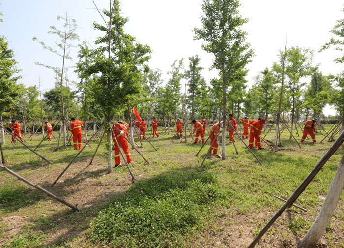 ????? 活動分為四組進行,四組黨員突擊隊跟隨引導(dǎo)員的腳步到達各自片區(qū),進行綠化帶雜草清除作業(yè)。在各組支部書記的帶領(lǐng)下,勞動中人人做表率,個個干勁足,有條不紊互相配合,一抹抹橘色在清新草色的襯托下格外美麗。