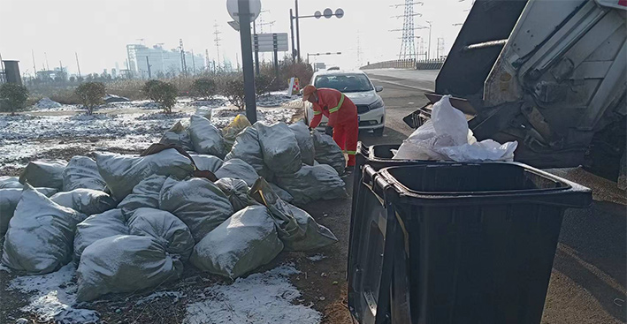 早上六點(diǎn),在徐圩新區(qū)垃圾轉(zhuǎn)運(yùn)站,環(huán)衛(wèi)分公司垃圾清運(yùn)班組班長羅海軍正在等著垃圾收運(yùn)中轉(zhuǎn)車的到來。他說:“知道昨晚下雪了,今天我們提前一小時(shí)就上崗了,以防因?yàn)榈缆窛窕绊懯者\(yùn)效率?!?據(jù)統(tǒng)計(jì),在持續(xù)低溫時(shí)段,他們每天清運(yùn)生活垃圾高達(dá)15噸,清理轉(zhuǎn)運(yùn)各類果皮箱垃圾達(dá)200余個(gè)及19家企業(yè)(單位)的垃圾桶,并同步負(fù)責(zé)裝運(yùn)由道路保潔工人撿拾定點(diǎn)擺放在路邊的近500包袋裝垃圾。(何春林)