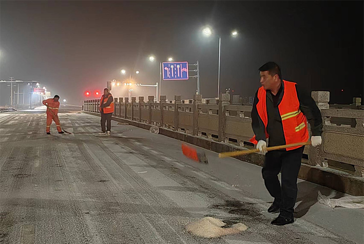 “下雪就是命令!”昨晚幾乎與降雪同步,板橋園區(qū)滿城“橘黃閃耀”。風(fēng)雪中,瑞南人不畏嚴(yán)寒,堅(jiān)守崗位,后勤保障加班加點(diǎn),在連云園區(qū)燒香河大橋上,各班組人員協(xié)同作戰(zhàn),有指揮、有鏟雪、有拋灑融雪劑,他們揮舞鐵鍬、揮動(dòng)掃把,全速進(jìn)行掃雪除冰工作。截止19日凌晨兩點(diǎn),燒香河大橋、程圩高架橋,上下引坡等交通要道區(qū)域積雪已基本清除完畢,其他路段正在有序清理。 (金知青)